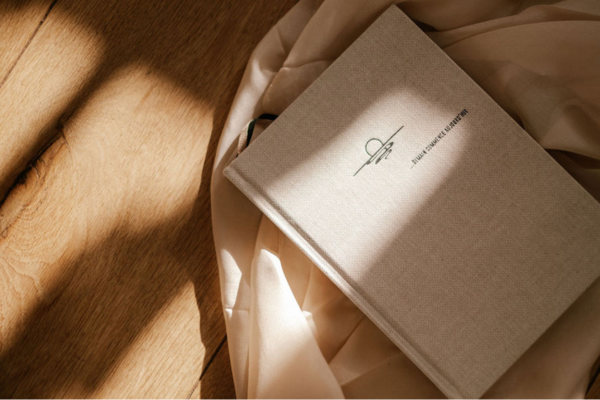 - Linen cover, sewn and embossed