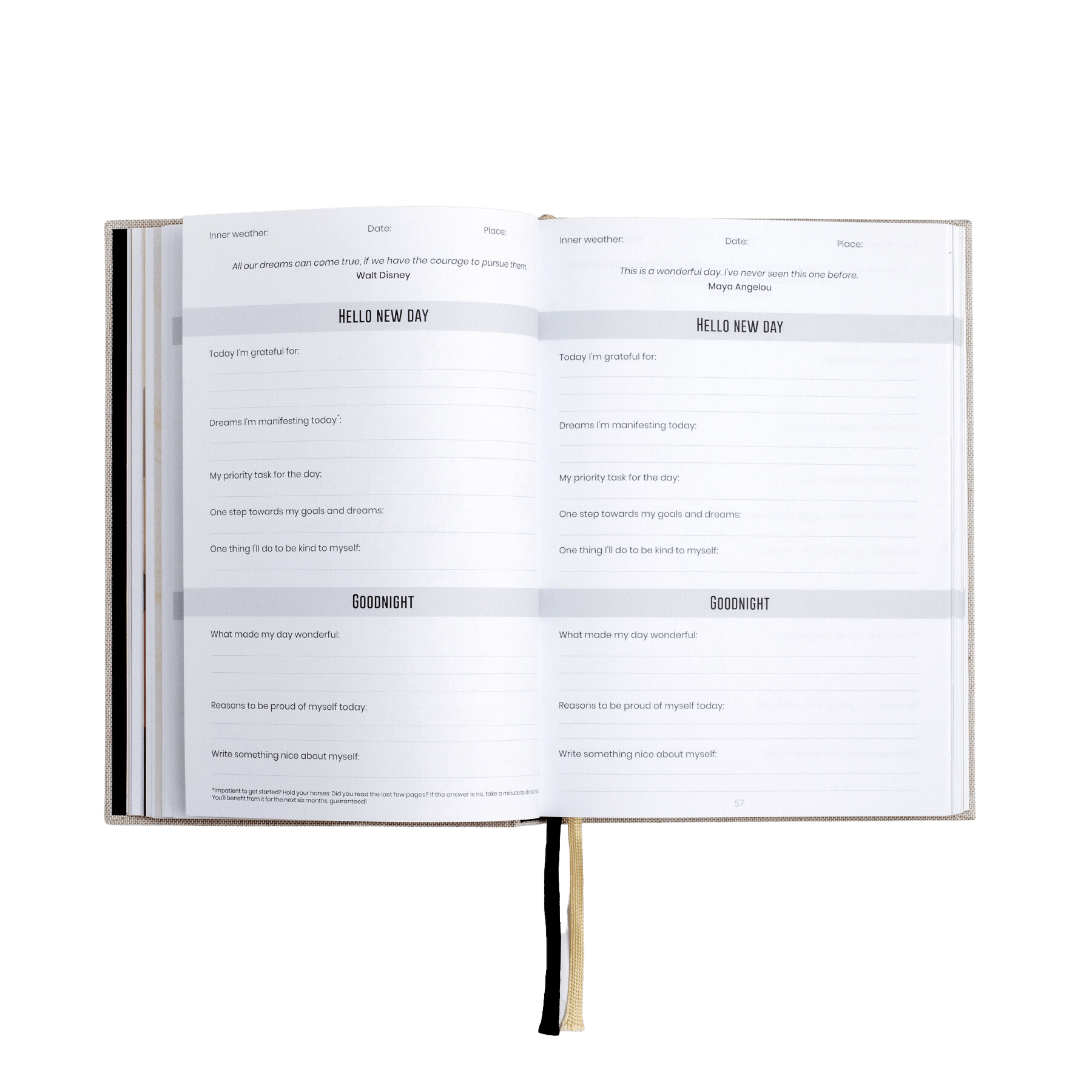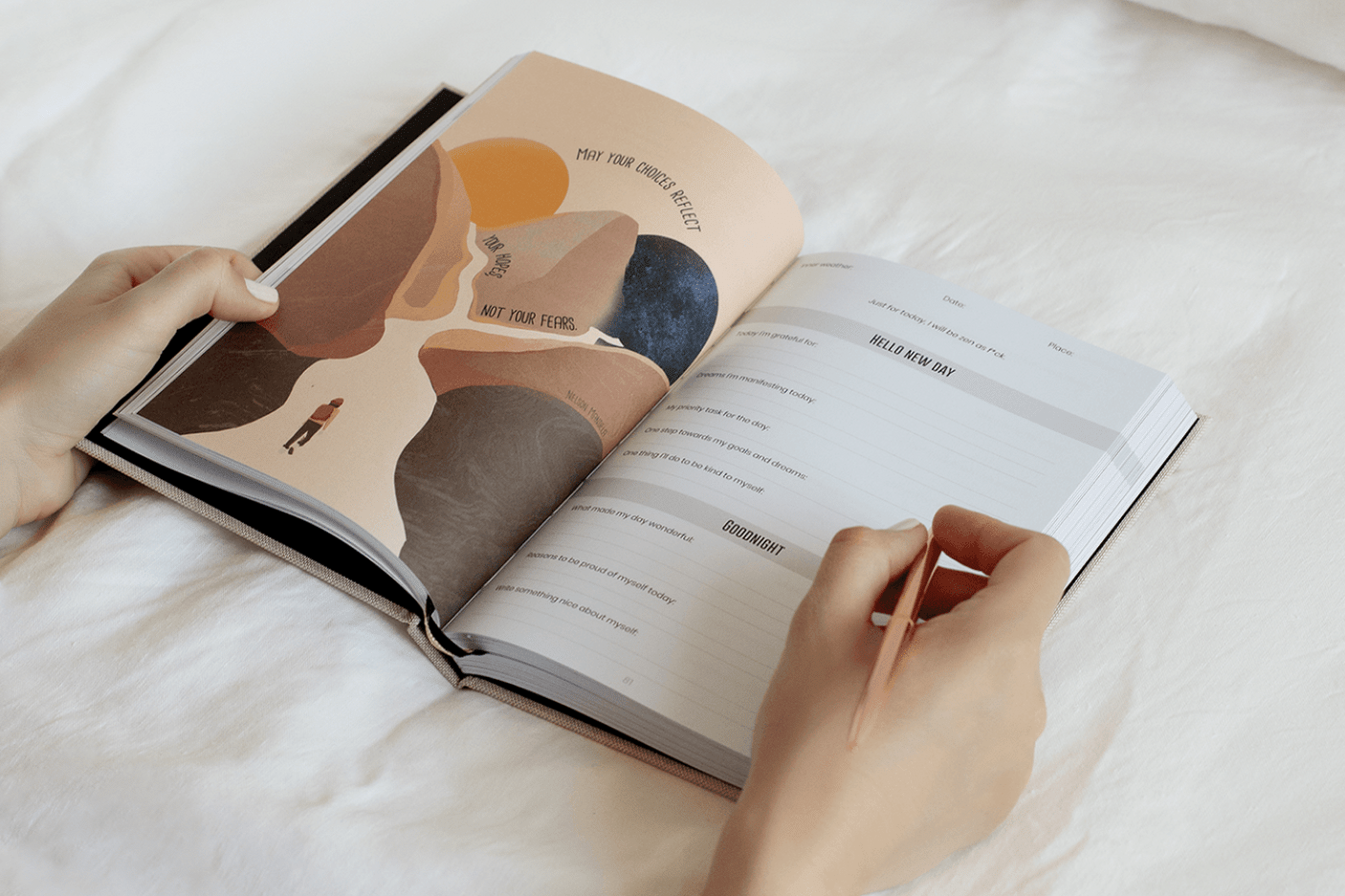 The journal is easy to use because it is guided: it contains questions, exercises and challenges that you have to answer every day, month or year. It only takes 10 minutes a day to complete: 5 minutes in the morning and 5 minutes in the evening.