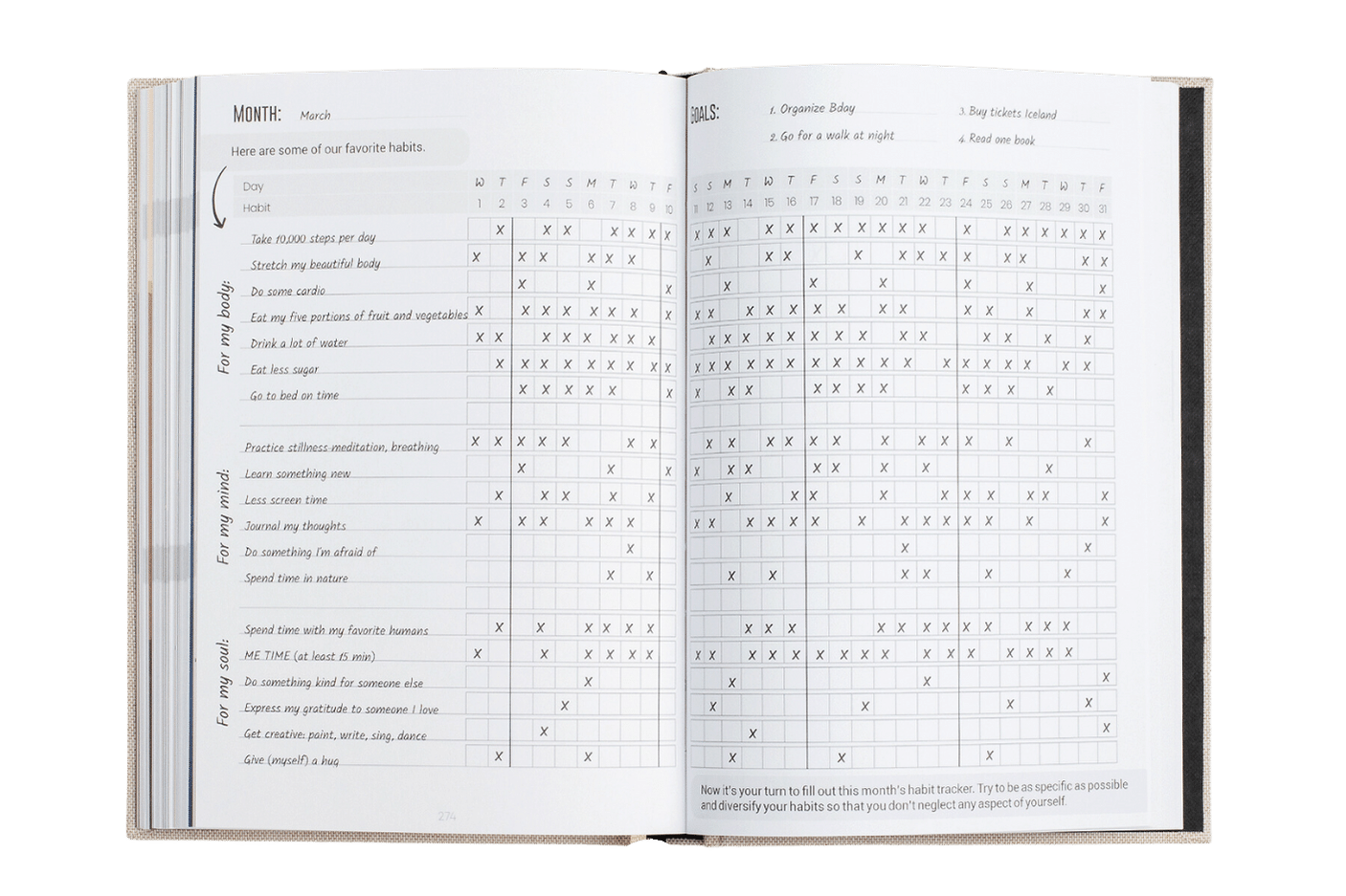 The journal invites you to make room for engaging in activities that fill you up - and, overall, to do more things that make you happy.